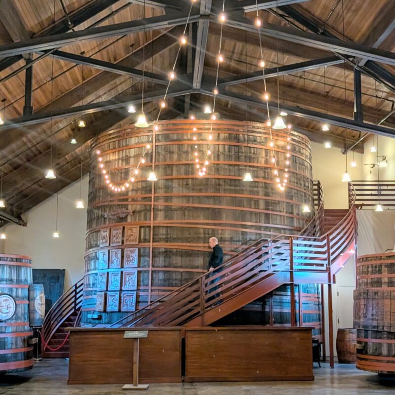 Taste wine and see the world’s largest redwood wine tank!